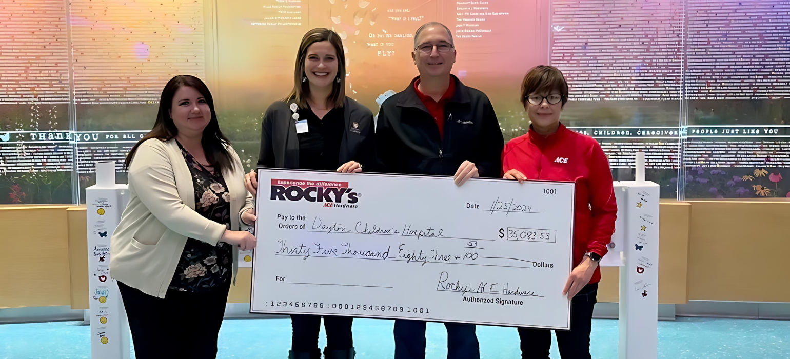 Rocky’s Ace Hardware, one of the country’s largest family-owned Ace Hardware dealers with 48 locations in nine states, kicked off the season of giving with its semi-annual “Round Up for Kids” fundraiser, raising a grand total of $41,376.96. Throughout the campaign, which took place during the month of November, customers rounded up their purchase totals to the next dollar. The difference was donated to the Children’s Miracle Network (CMN) Hospital nearest to each store.