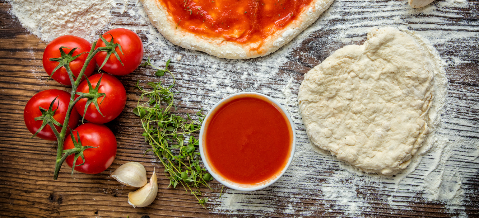 - Add your preferred sauce and toppings, then launch the pizza into the oven. Cook for 60-90 seconds, turning the pizza every 20 seconds or so to ensure an even bake. Remove, transfer the cooked pizza to a serving board, garnish as you wish, cut into eight slices and serve!