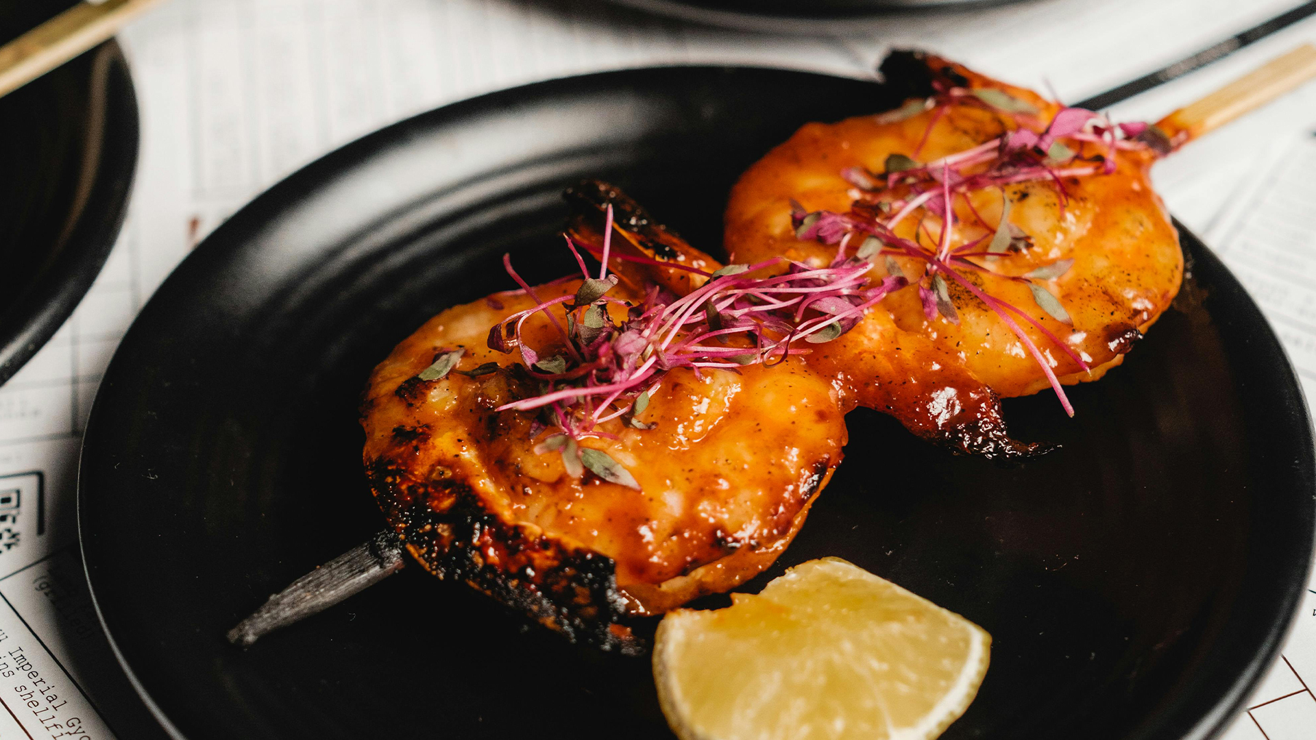 - Place skewered shrimp directly on the hot grill grate. Cook for 3–4 minutes per side until the flesh is opaque. Serve and enjoy!
